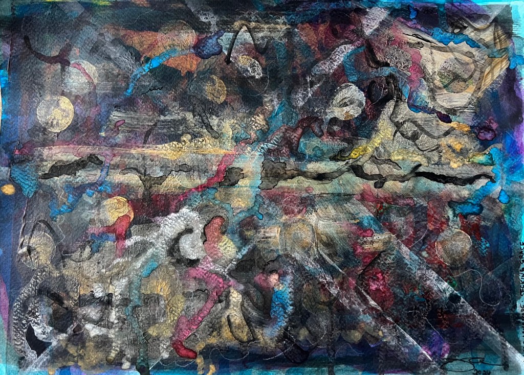 Embracing the Mystery: 11″ x 15″ mixed media on paper